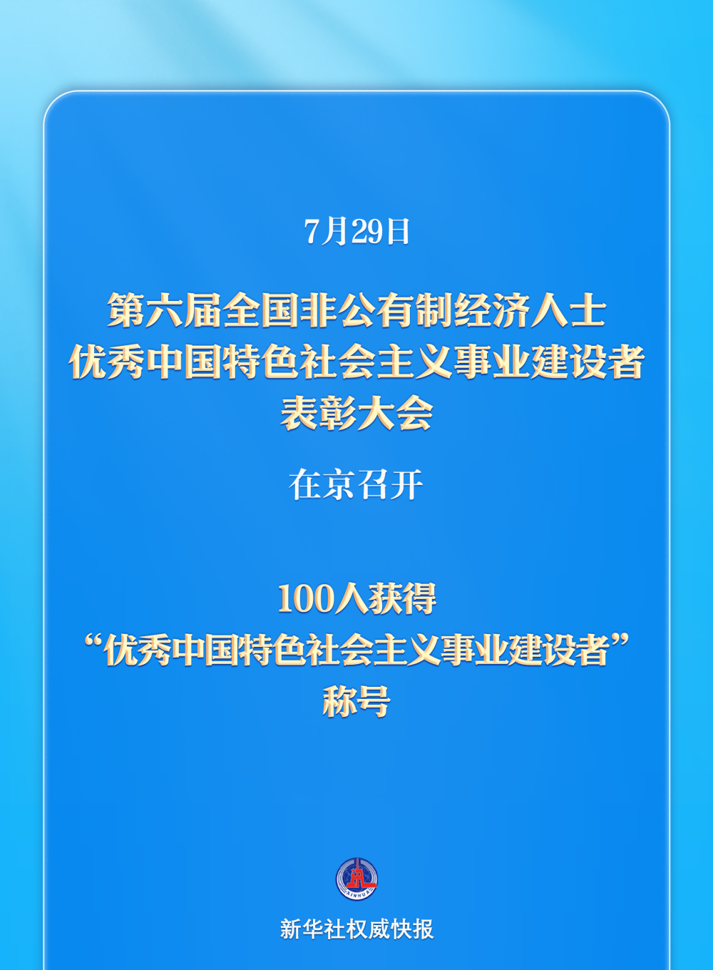 7月29日,第六届全国非公有制经济人士优秀中国特色社会主义事业建设者表彰大会在京召开。会上,100人获得“优秀中国特色社会主义事业建设者”称号。其中,来自安徽的冯雷、姜纯、李加海、仰时威荣获这一表彰。