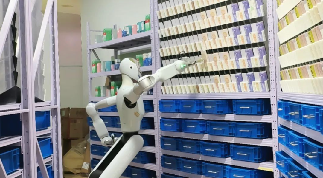 银河通用相关负责人武文韬介绍,顾客从网上下单,人形机器人识别订单后完成药品捡取并对接骑手的派送工作,“机器人可以从货架上取药,如果货架上药品缺少了,机器人也能补货。”