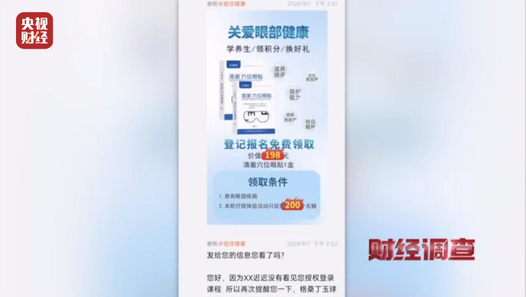 记者在卧底期间,公司主要销售的产品是一款名为“固本明目颗粒”的眼科类药品,所以公司购买的个人信息都是患有各类眼部疾病的老年人。然而,在推销这款“固本明目颗粒”的视频课程中,涉及的内容远远超过了这种药的作用范围。