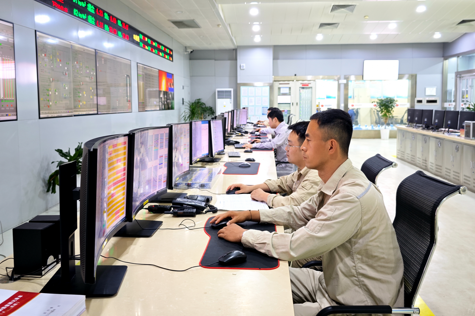图为运行人员正在调整设备参数