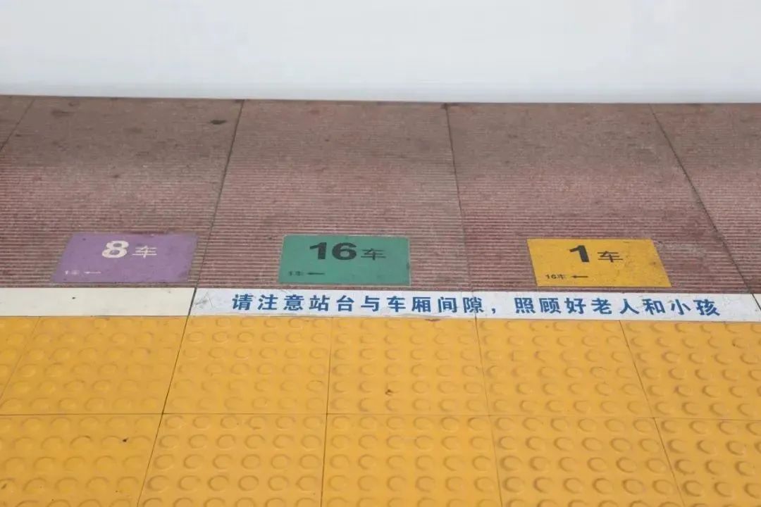 反向运行、大编组或重联动车车厢位置标识,采用绿色地标。