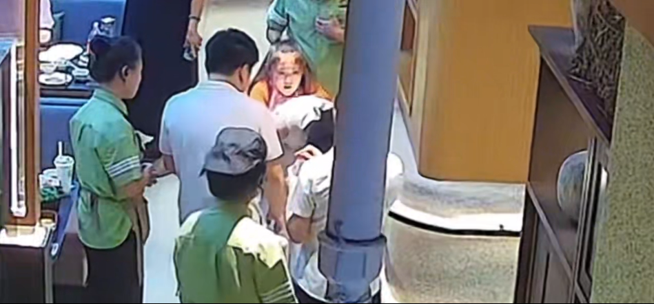 “妈妈,我会!我能救她!”就在这危急时刻,邻桌就餐的一名小女孩冲出人群。只见她镇定地绕到遇险女子身后,双臂环抱其腰腹,一手握拳,一手抚掌,用力且有节奏地连续冲击女子的上腹部位。