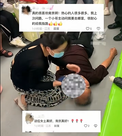 经公交轨道公安局确认,这位暖心施救者就是南京市中西医结合医院的工作人员邹月宁。