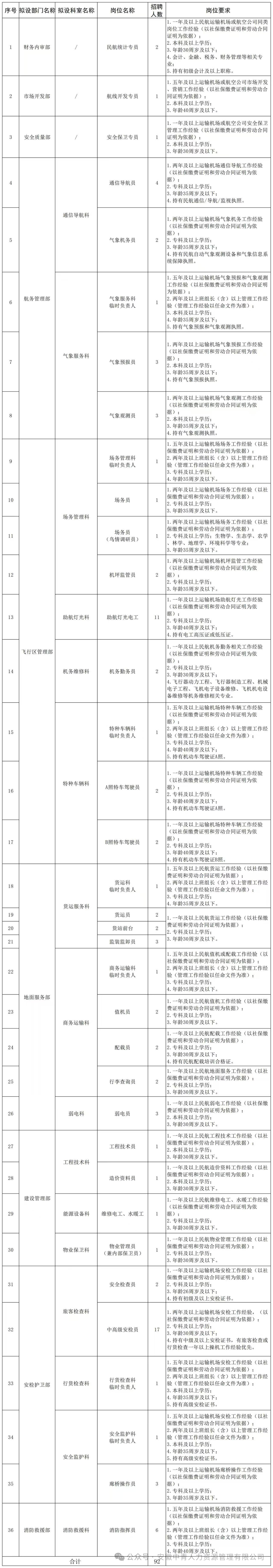 备注:如遇机场建设和运营保障需要,将视情况新增招聘岗位。