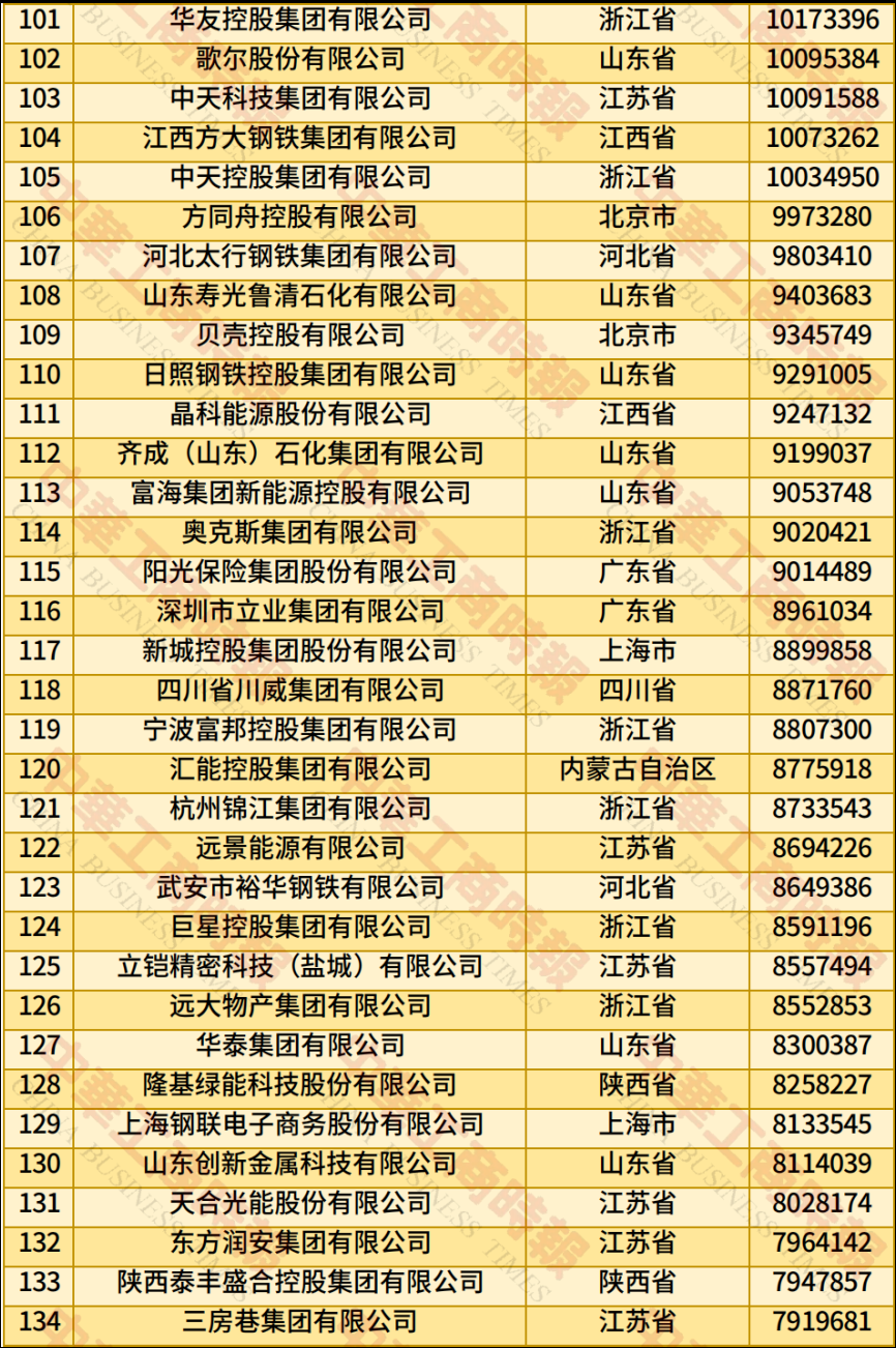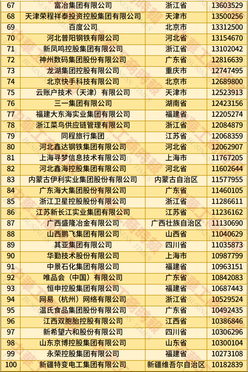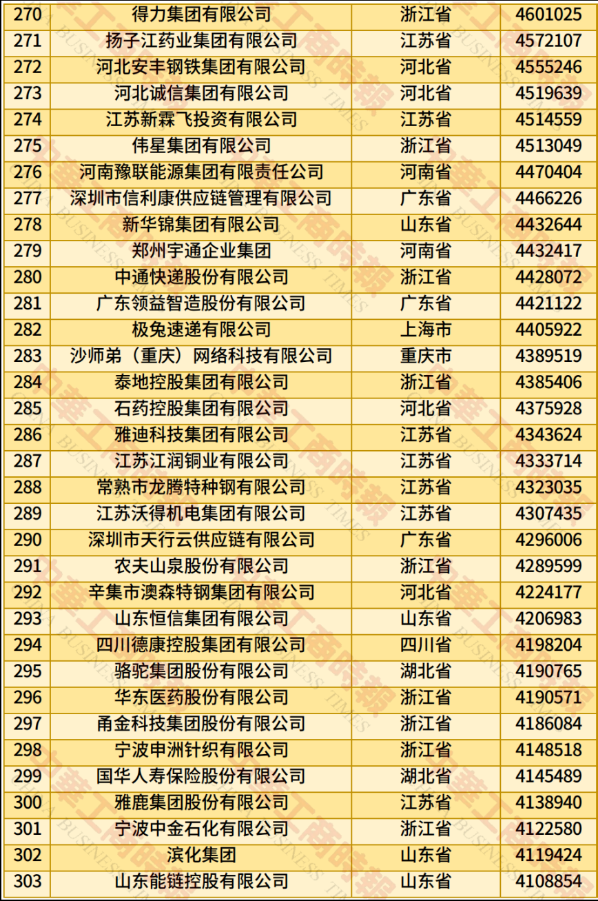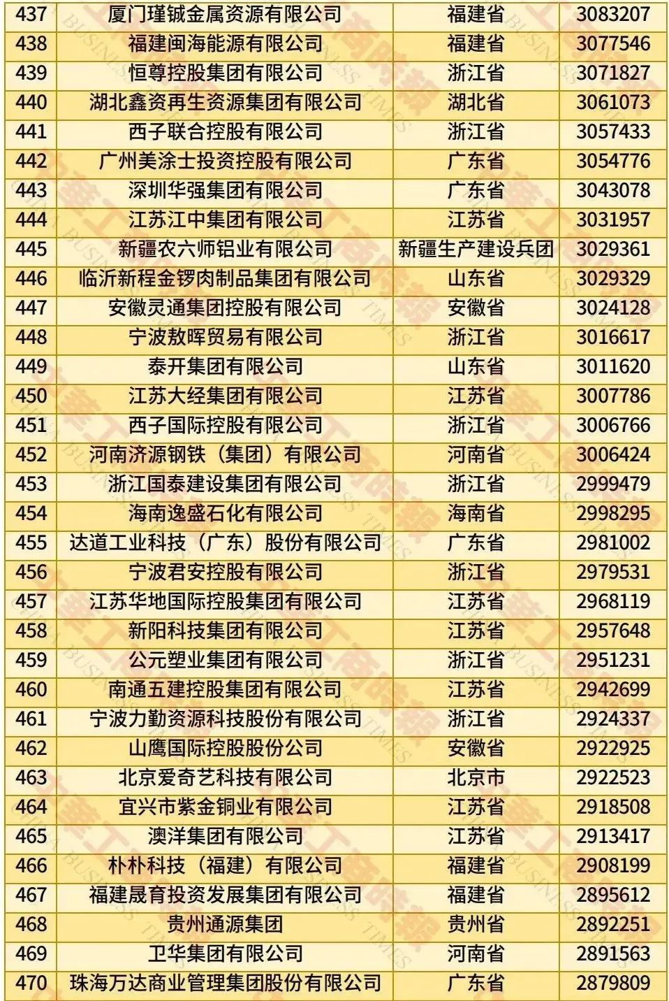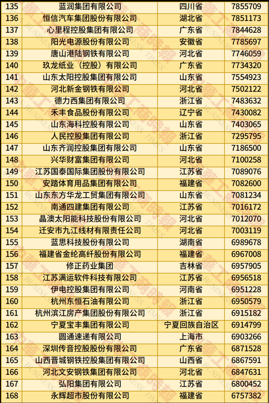 记者了解到,此次民营企业500强入围门槛增至270.23亿元;营业收入总额达到43.05万亿元;净利润合计1.80万亿元;研发费用总额1.13万亿元,研发人员总数115.17万人,平均研发经费投入强度2.77%;纳税总额达1.27万亿元,纳税额超过10亿元的企业有240家,占500强比例为48.00%。