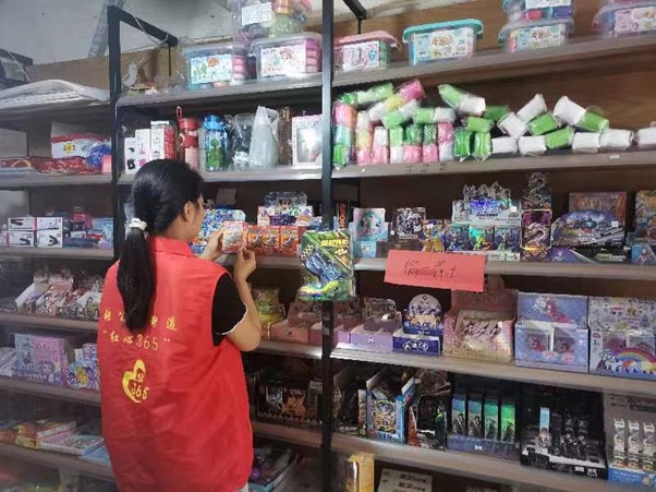 以三级巡查机制为基础,强化街道、社区、网格与学校的联动协作。开学前一周,联合公安、城管、市场监管等部门,对辖区内小学及幼儿园周边200米范围内的文具店、书店、网吧等场所开展“拉网式”排查。重点检查是否存在售卖含有色情、暴力、恐怖、封建迷信等内容的非法出版物、盗版教辅资料,以及网吧是否违规接纳未成年人等情况,累计排查各类经营场所21家。同步发挥党员先锋岗作用,组织党员志愿者在上学、放学时段值守校园周边,形成“家校社”协同守护链条,确保重点时段校园周边环境安全有序。