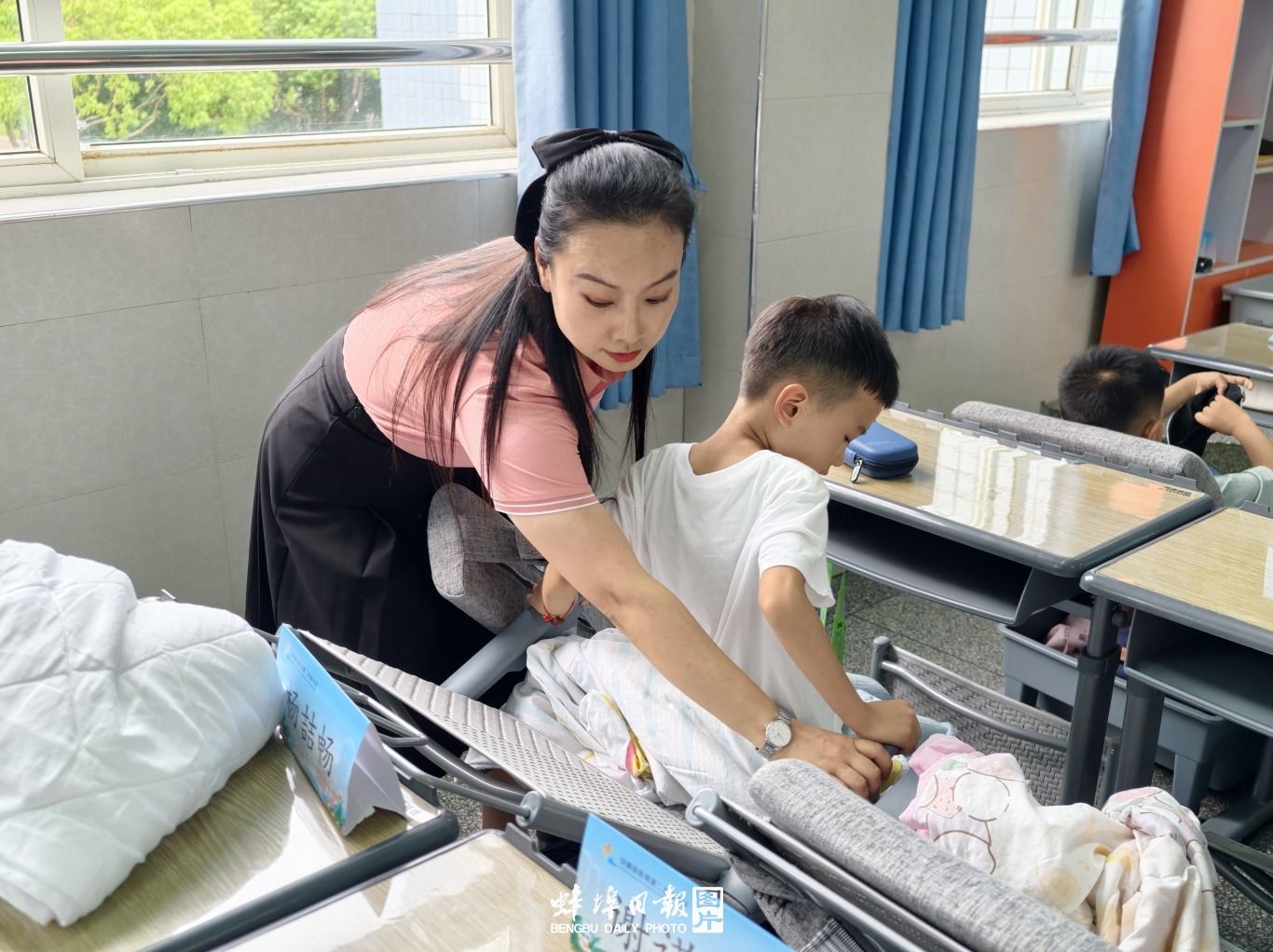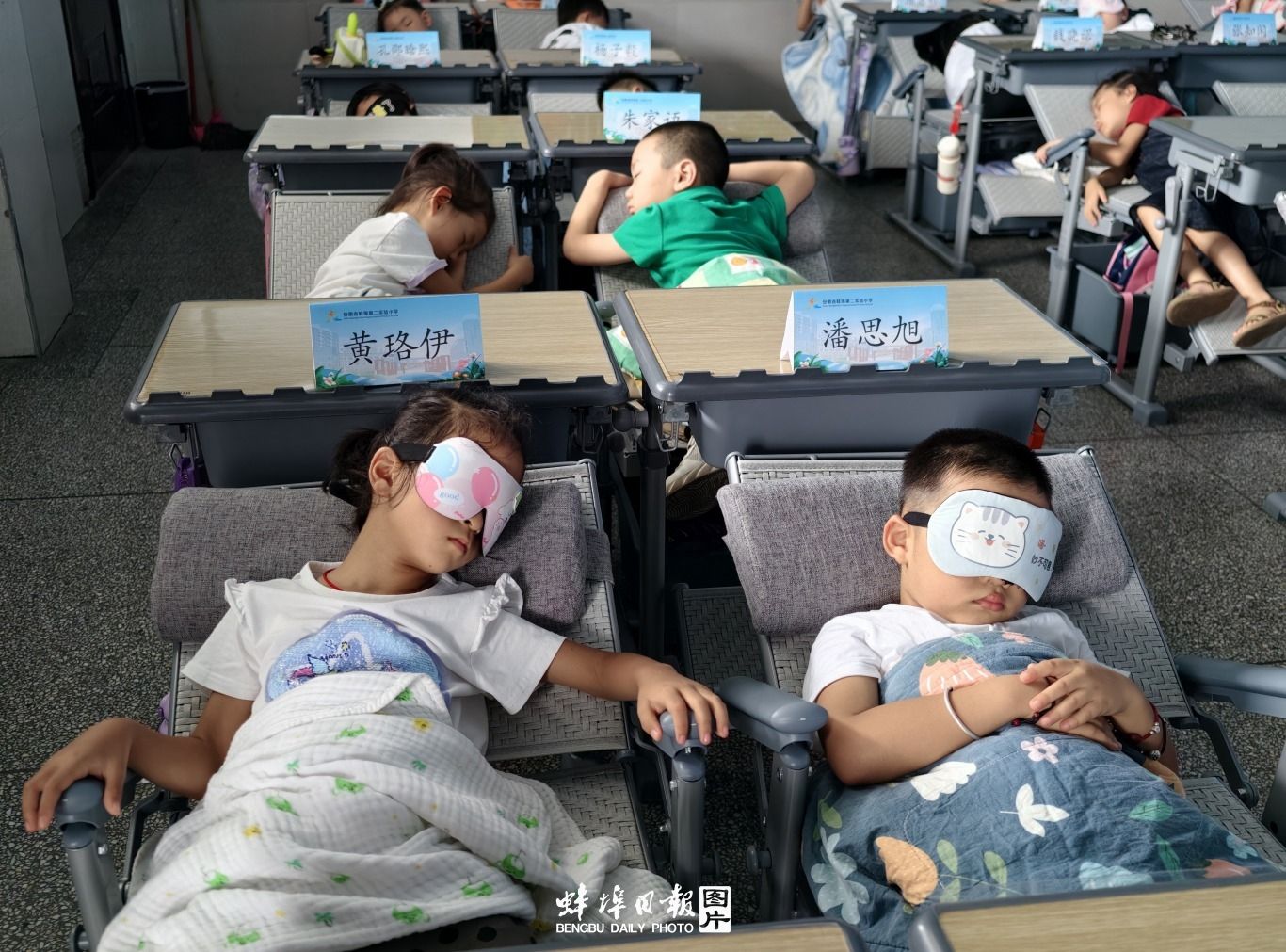 蚌埠发布客户端讯(融媒体记者 陈昂 文/图)9月1日开学首日,蚌埠市兰凌路小学的教室内,折叠午休椅整齐排列,空调持续输送凉风,孩子们戴着专属眼罩、盖着柔软小毯,构成一幅温馨的午休图景。记者走进校园,探访该校以 “躺椅 + 空调 + 眼罩小毯” 为组合的午休保障升级,感受基层学校对学生的细致关怀。