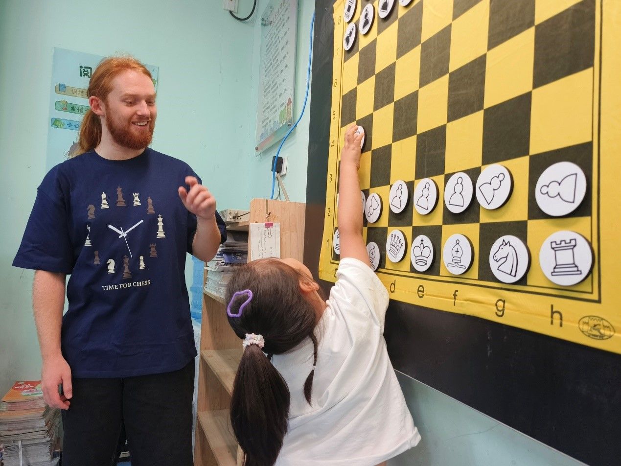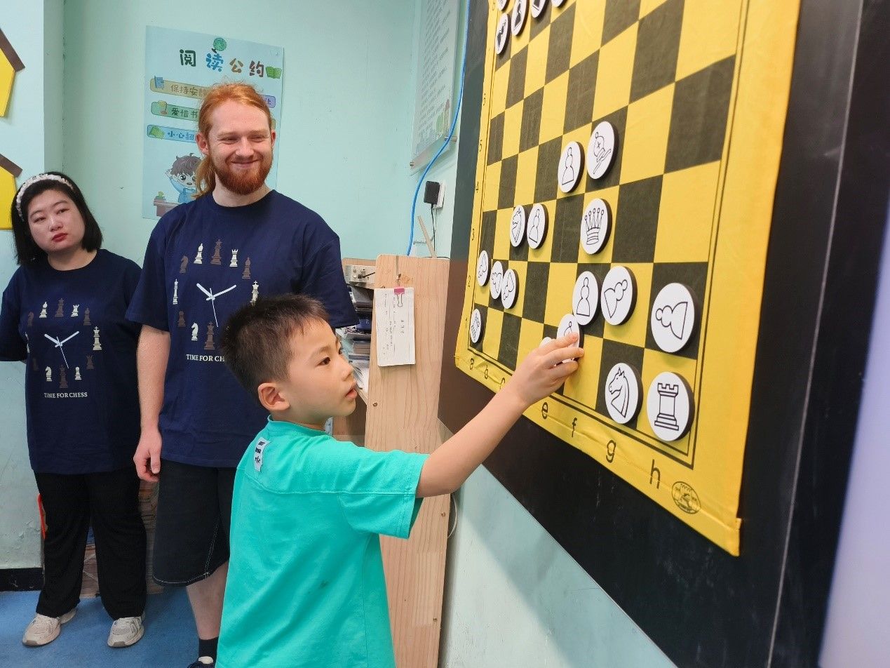 蚌埠发布客户端讯(融媒体记者 吴媛媛)9月4日、5日,德国国际象棋志愿者、波恩大学物理学硕士研究生路易斯循着全民健身志愿服务活动暨全国国际象棋“四进”(进学校、进社区、进机关、进养老机构)活动脚步,先后走进蚌埠新城实验学校和张公山第一幼儿园,将跨国棋艺交流的暖意送进校园。