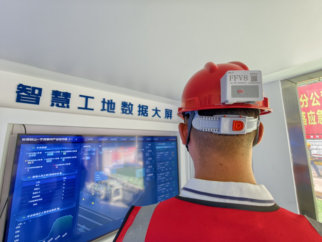 “不仅能防误闯,还能主动识险。” 邱浩说,系统可自动监测工人静止状态,若超过设定时长便远程告警,管理人员依据定位轨迹能迅速赶到现场,排查是否发生摔倒、扭伤等意外。更关键的是 SOS 紧急呼救功能,工人遇突发身体不适时,轻触帽上按钮,管理人员就能在数万平米工地中精准定位,第一时间实施救援。