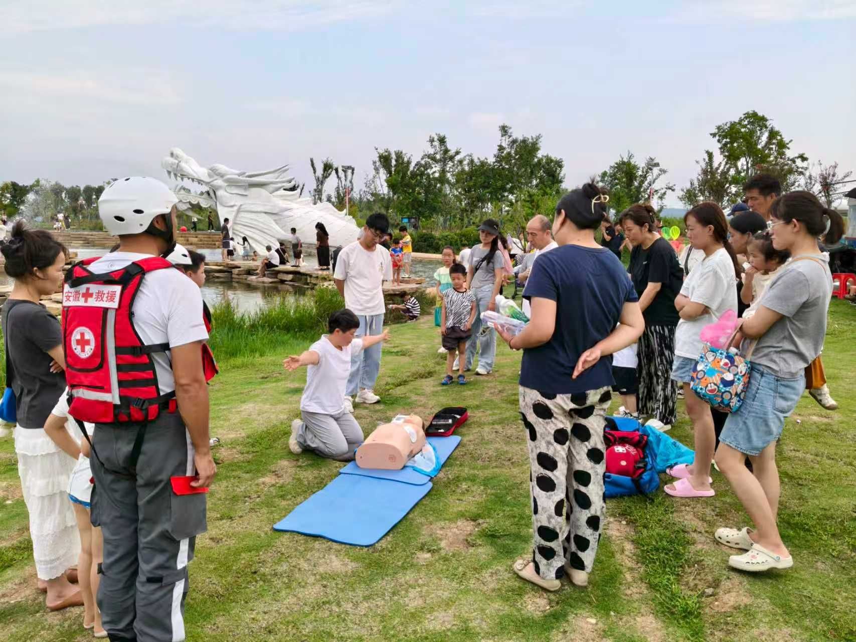 蚌埠发布客户端讯(融媒体记者 陈瑶)近日,蚌埠市红十字救援队在龙子湖风景区“龙鳞叠水”区域开展了一场生动的防溺水实景教学活动。通过现场演示、互动教学等方式,让家长和孩子们在实景中掌握防溺水知识和应急救援技能,受到参与家庭的一致好评。