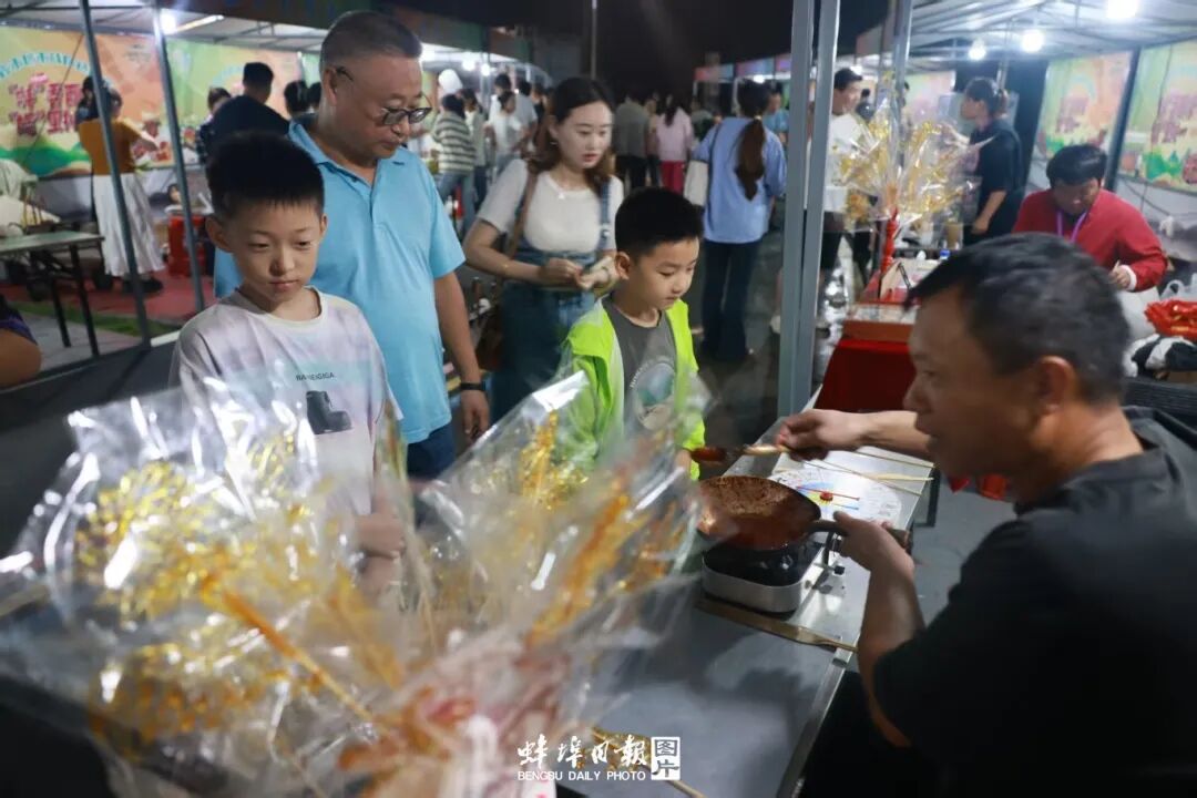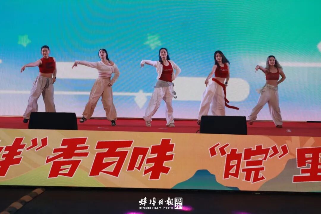 活动中还穿插了丰富的文艺演出和互动环节。《人生八雅》舞蹈优美动人,“虾路相逢”抓虾比赛笑点不断,“美食猜猜猜”更是让大小朋友都踊跃参与,全程无冷场。现场还设置了非遗文创、美食特产展销区,供市民“逛吃逛吃”、边看边买,电商直播间里优惠不断,让屏幕前的网友也能隔屏感受蚌埠风味,让“蚌埠味道”通过屏幕走向全国。