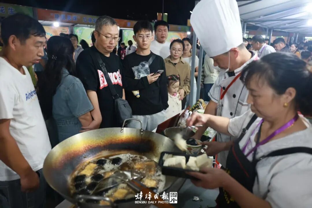 锅碗瓢盆的碰撞声、食材的滋滋声与满场香气交织,上演了一场味觉、视觉与嗅觉的狂欢。美食爱好者也毫不逊色——每一道菜都是对“蚌埠味”的深情诠释。