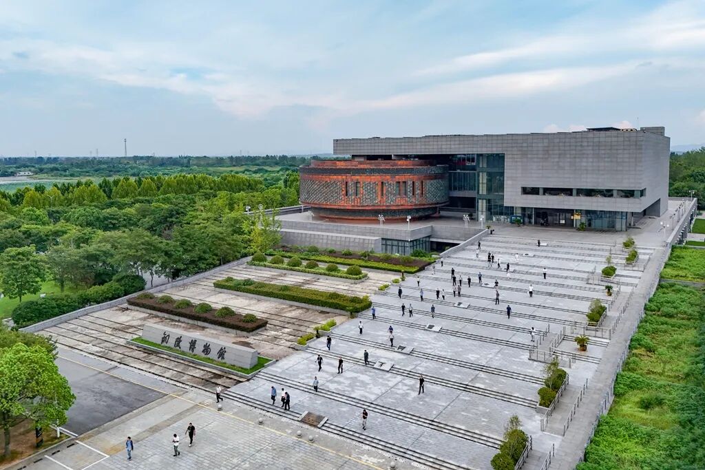 离开大通古镇,采风团一行走进铜陵市博物馆。这座以铜文化为主线的国家二级博物馆,本身就是一件“青铜艺术杰作”——以春秋兽耳鸟纹鉴为设计原型,方形场馆中嵌入古铜色圆形建筑,50吨铜打造的单体装饰铜幕墙,直观诠释着青铜冶铸“范”与“器”的深层关联。