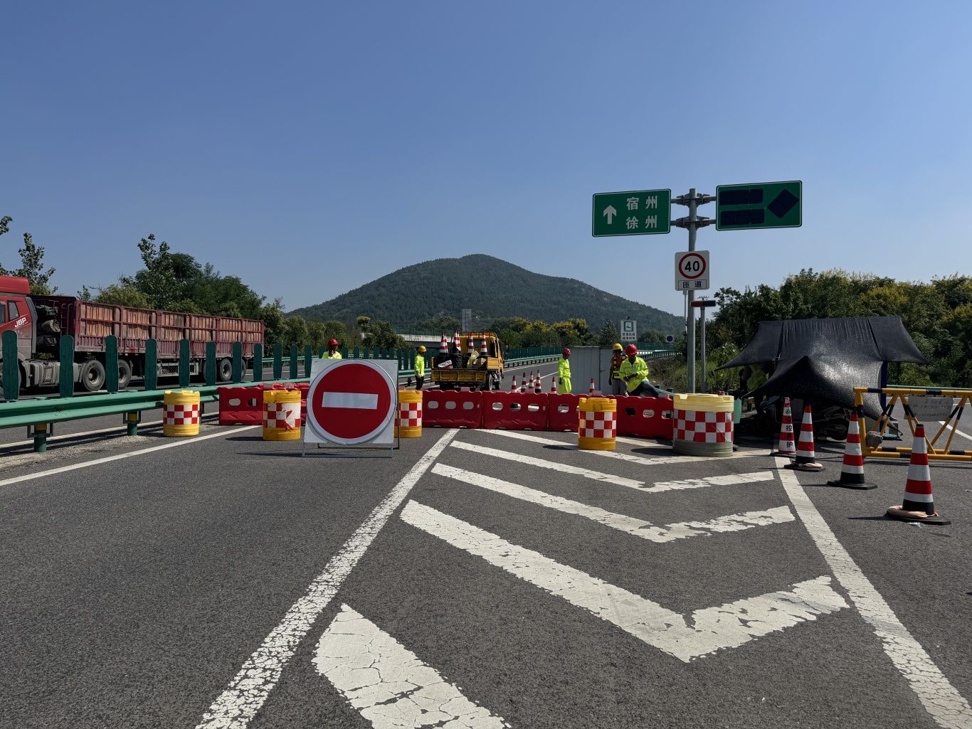 9月16日上午,记者在涂山怀远收费站现场看到,入口处已设置红色水马进行物理隔离,并有工作人员引导车辆。不少原计划驶入高速的车辆在得知封闭信息后选择掉头绕行。