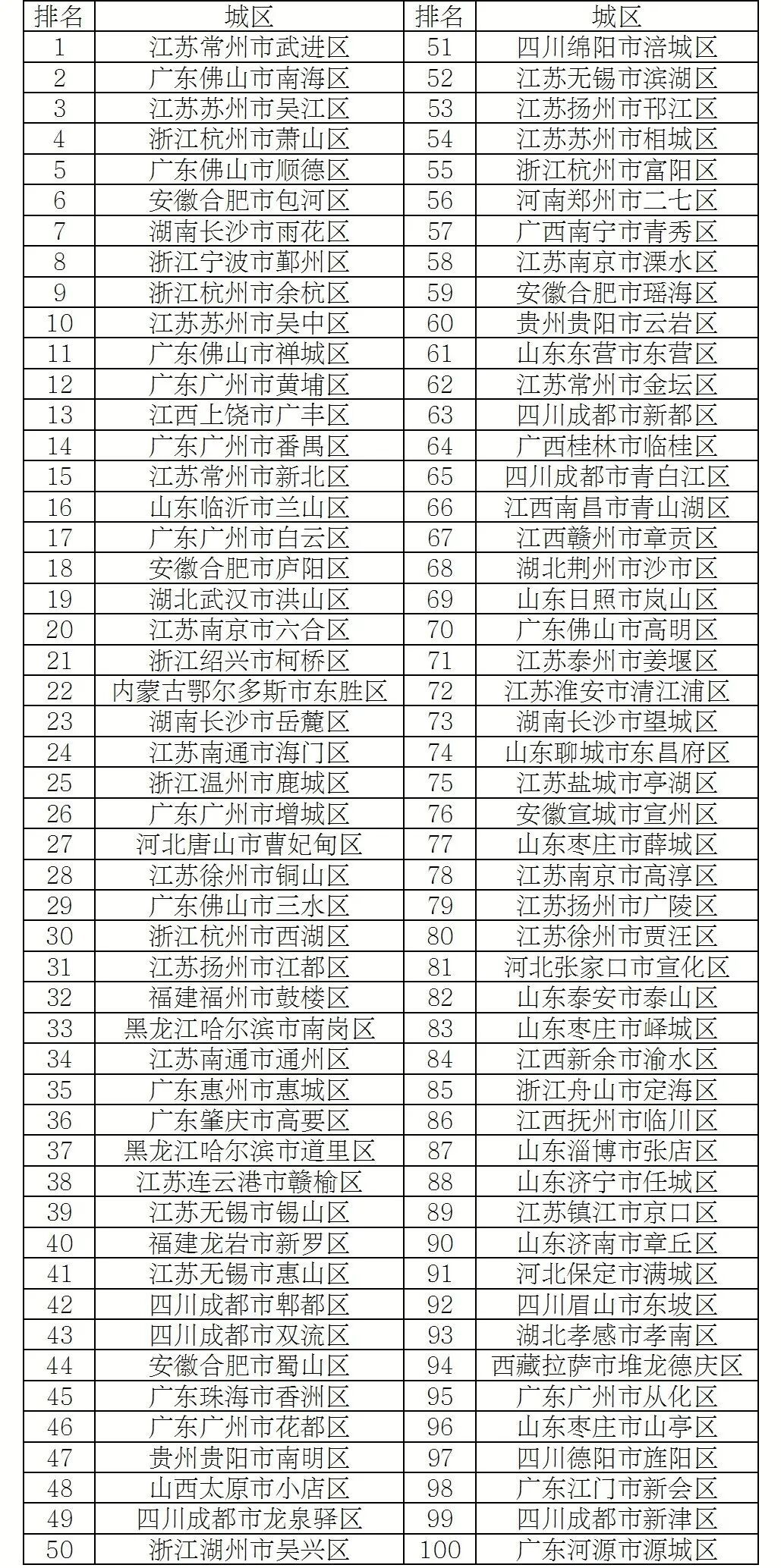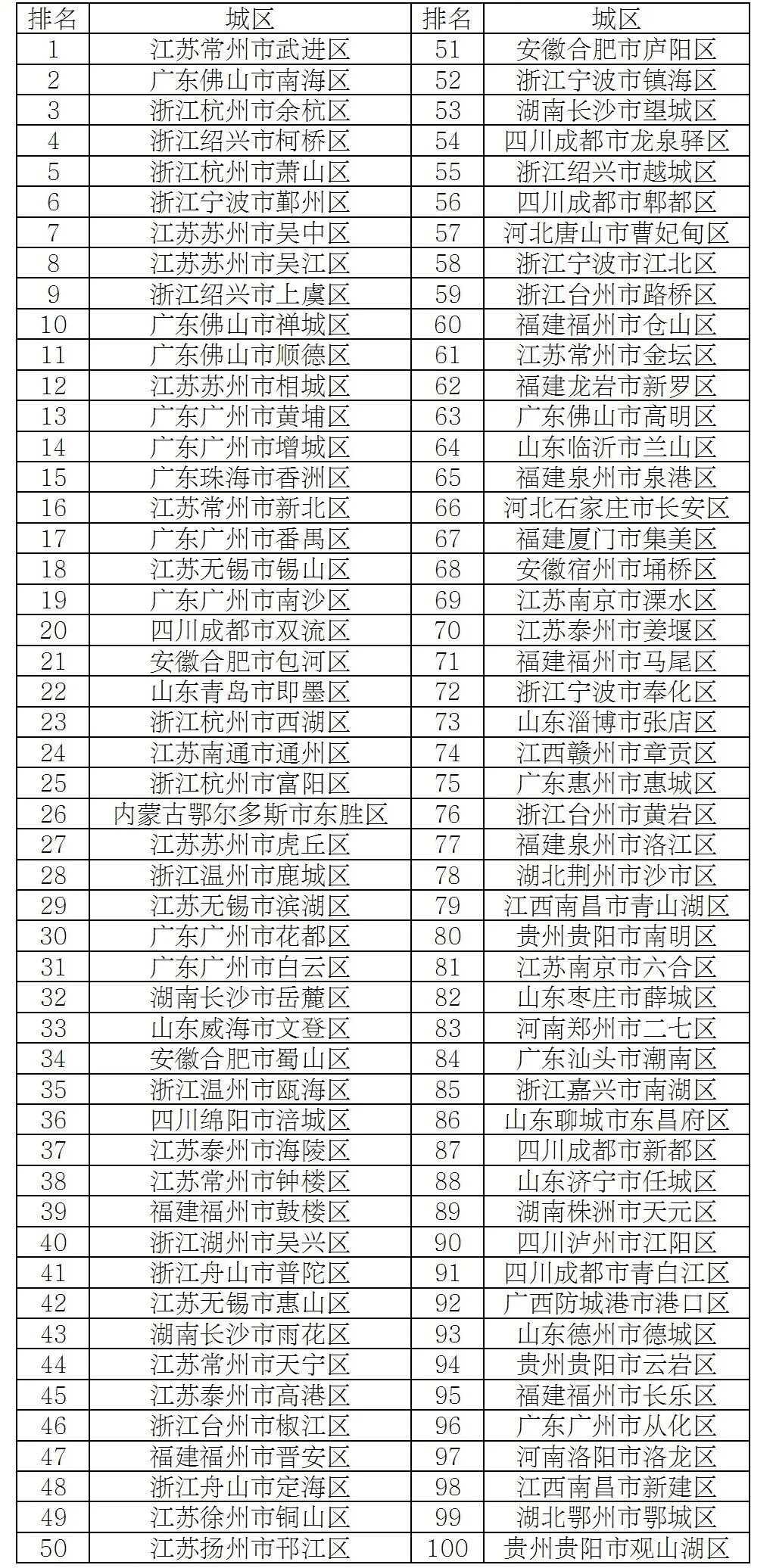 2025年度全国综合实力百强区