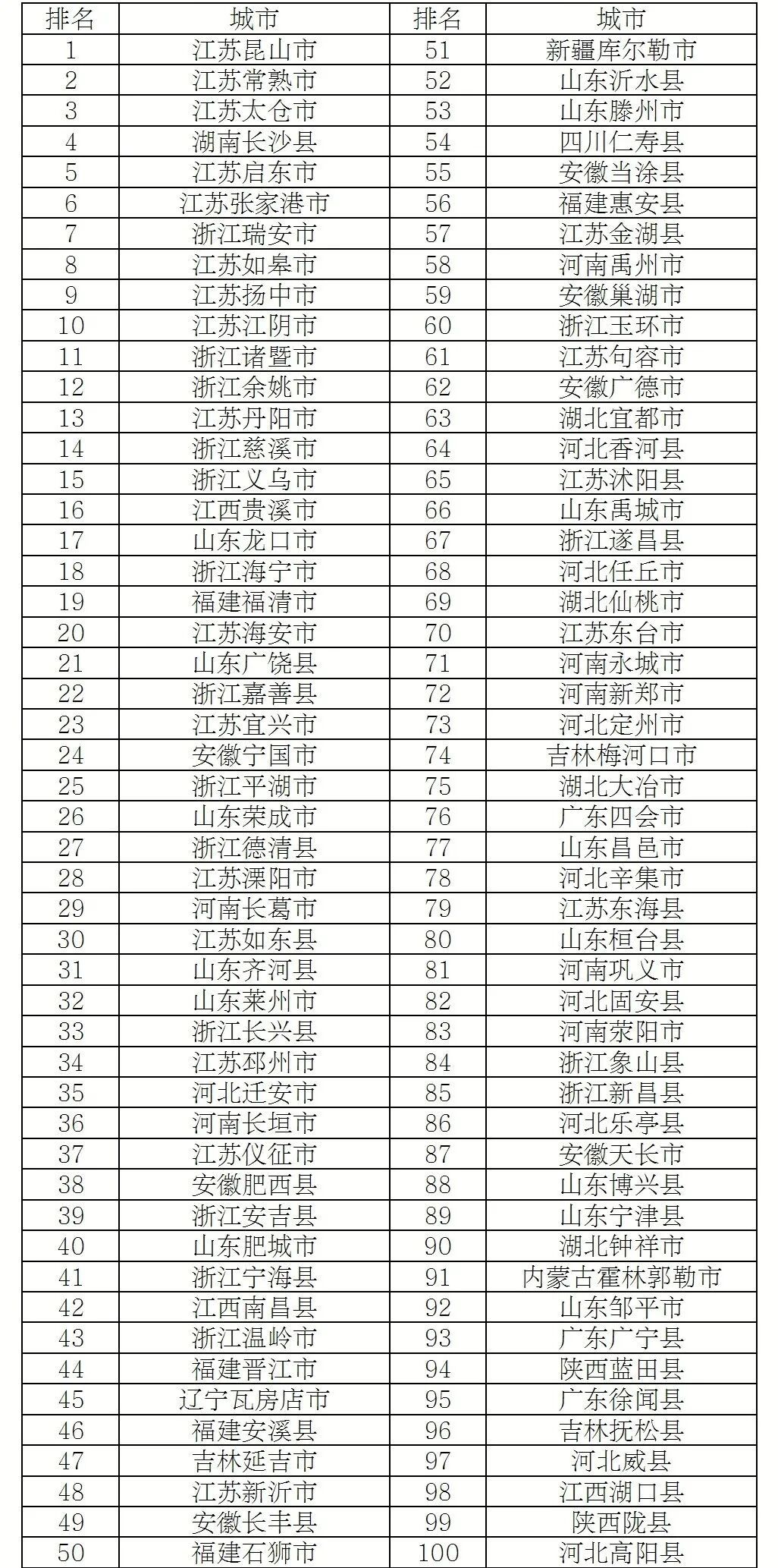 2025年度全国综合实力百强县市