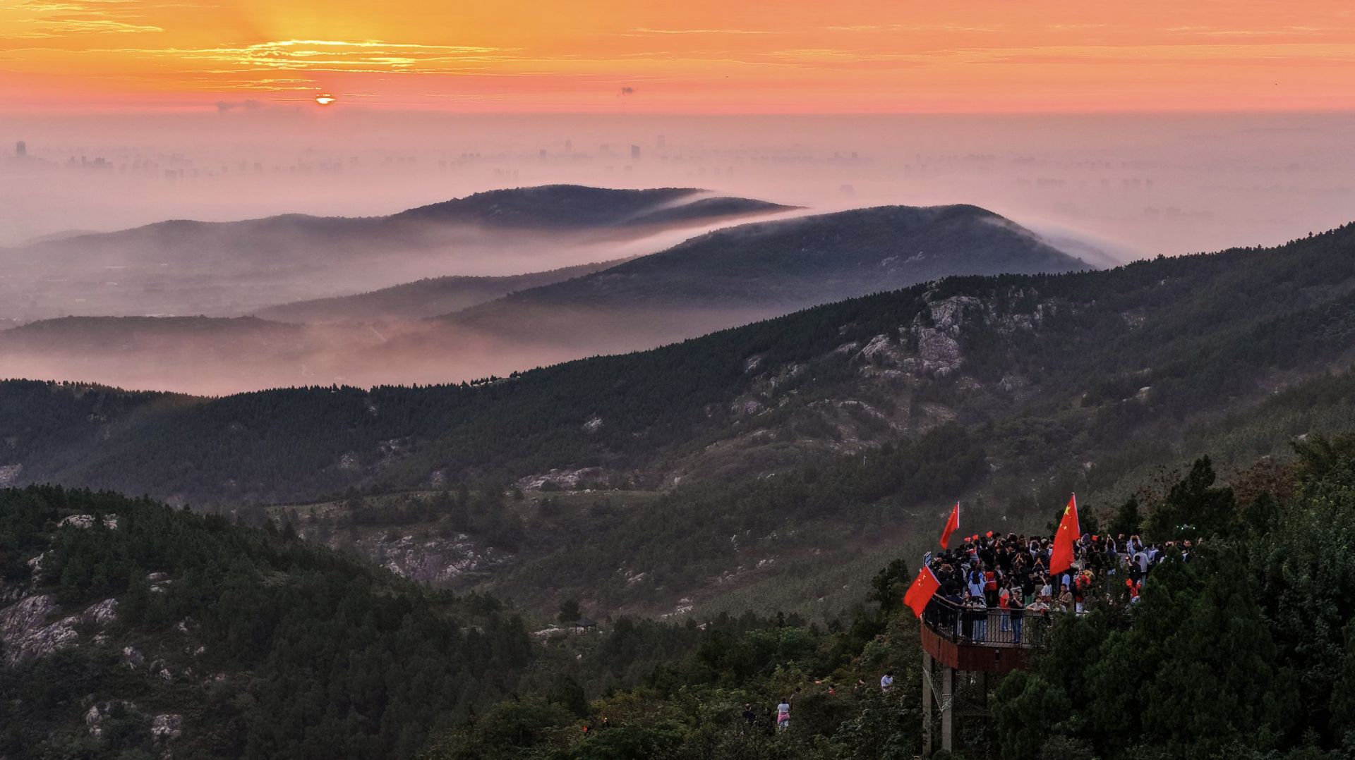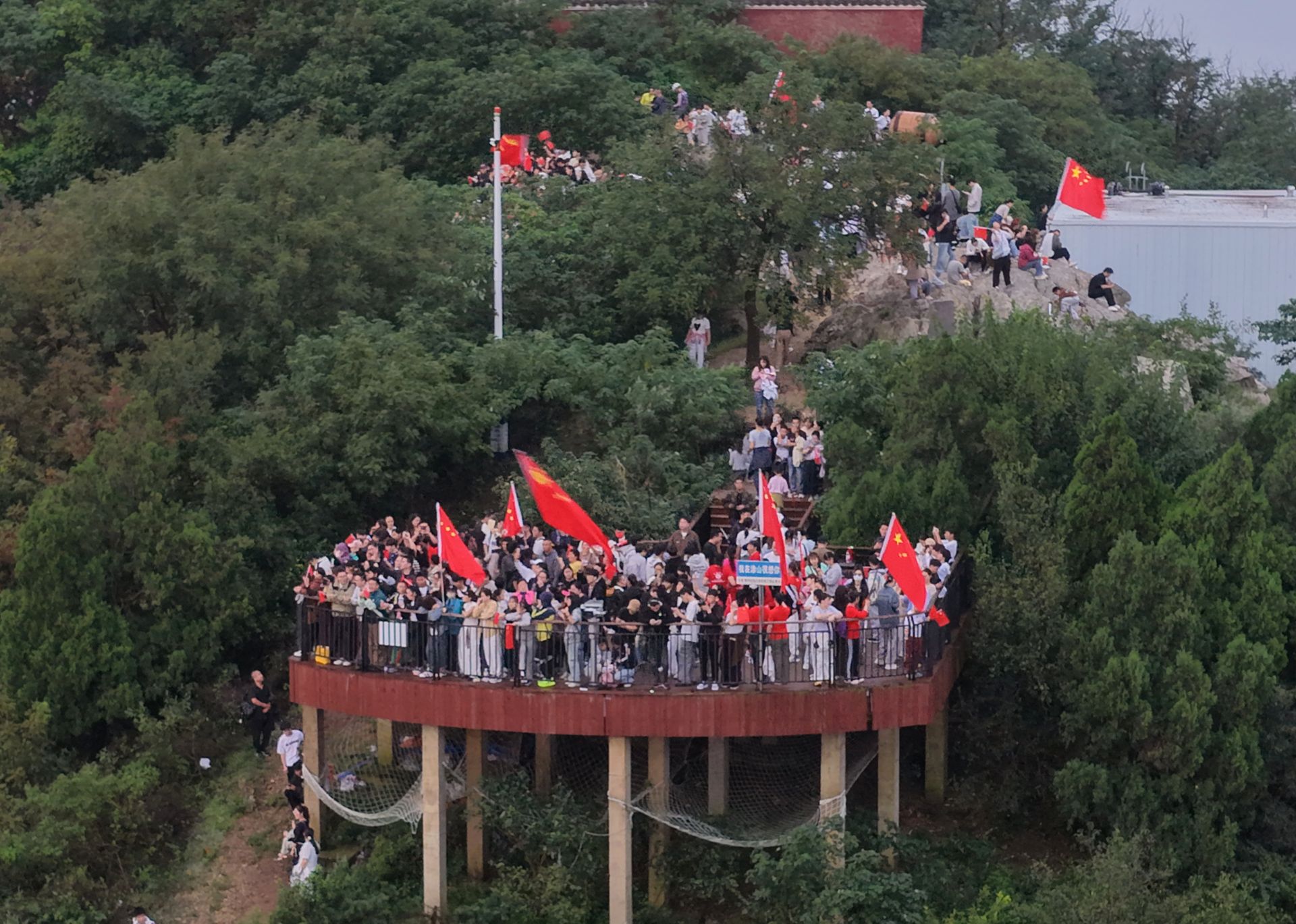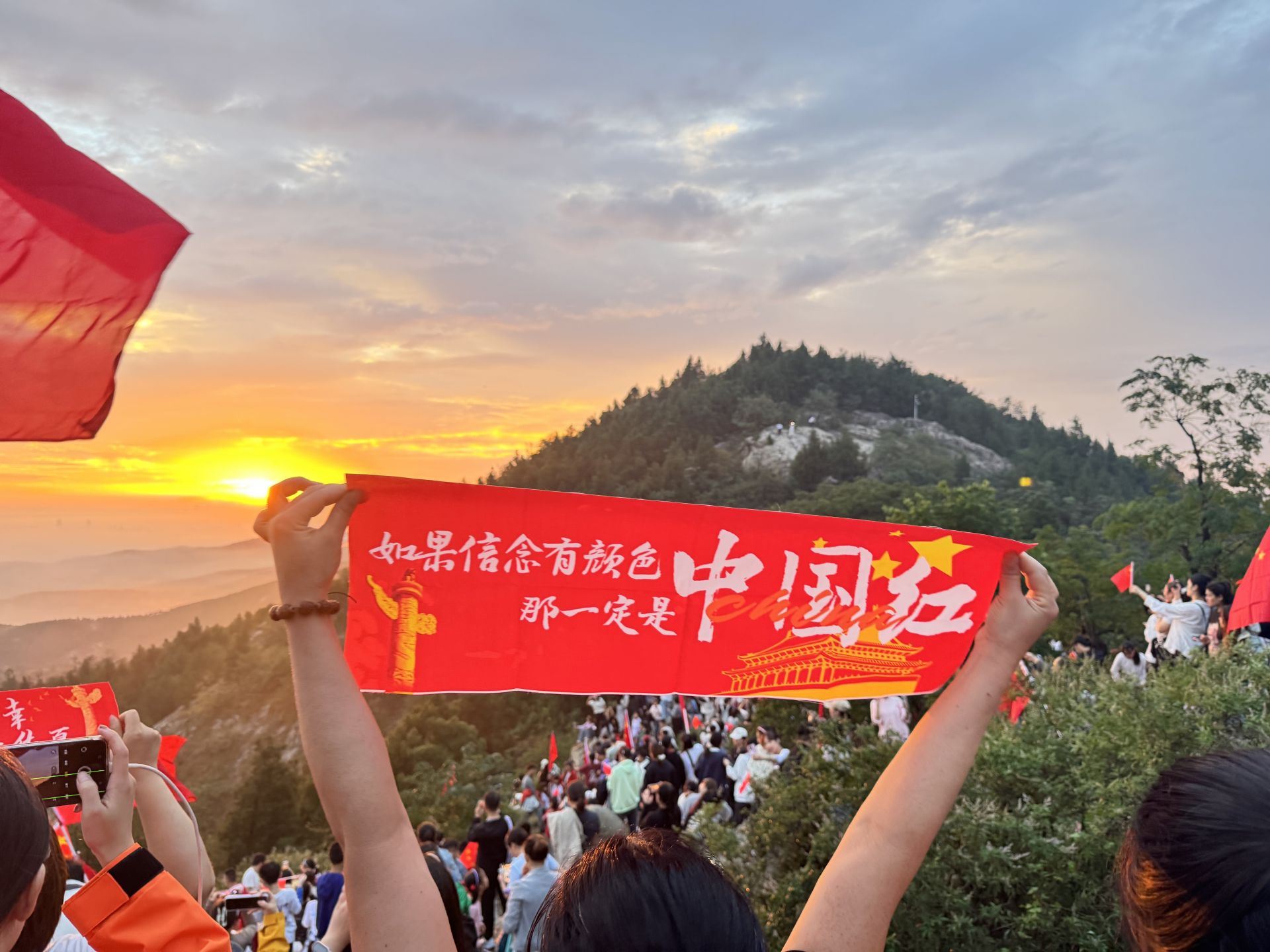 10月1日清晨,蚌埠涂山山顶早早聚集了众多市民。天微亮,山间便飘动起一片片“中国红”,大家手挥国旗,迎着第一缕晨光,共同迎接祖国生日。风中的国旗与人们脸上的笑容相映,快门声、欢笑声交织,每个人都用最质朴的方式,表达对祖国的热爱与祝福,让这个清晨的涂山充满了浓浓的家国情怀。