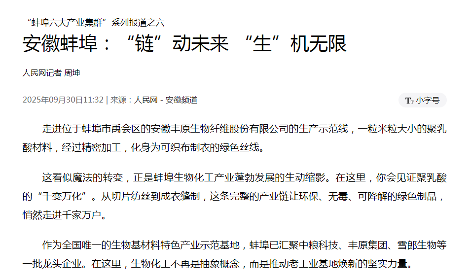 在固镇经济开发区,仅丰原集团就集聚了16家规上企业,形成从“玉米到聚乳酸”的全产业链闭环。其在建的50万吨乳酸、30万吨聚乳酸项目,将占据全球半数产能,让“蚌埠制造”站上世界舞台。