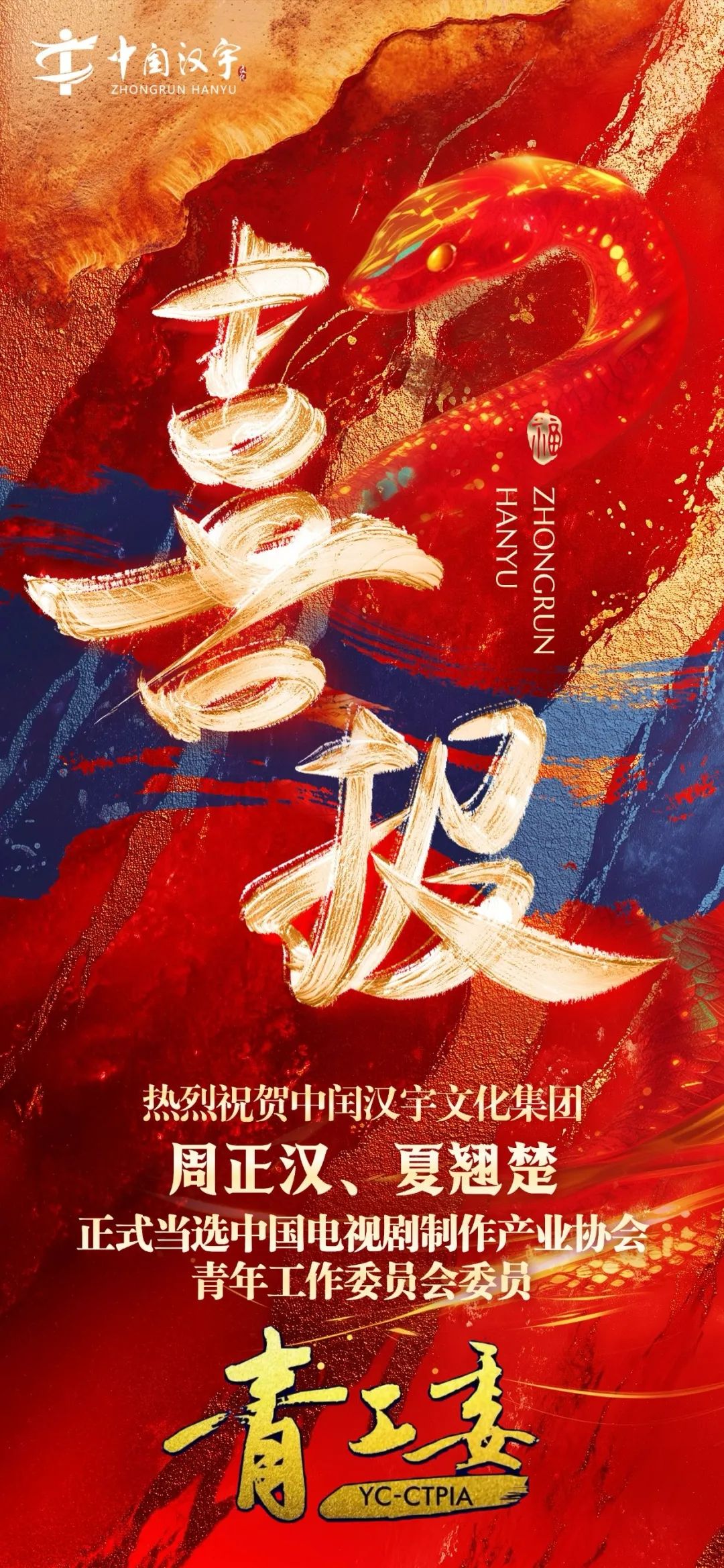北京日报-京报网讯 2025年10月,“中国首个全国性青年影视工作者的社团”中国电视剧制作产业协会青年工作委员会在北京批准通过中闰汉宇文化集团周正汉、夏翘楚分别以导演、编剧、制片人组别名义正式加入协会并担任委员。中国电视剧制作产业协会青年工作委员会(简称“中制协青工委”),是团结全国青年影视工作者的行业机构,接受国家广播电视总局的管理和指导。现任特聘指导委员中制协会长、著名导演尤小刚,中制协常务副会长、爱奇艺创始人、CEO龚宇,腾讯公司副总裁、企鹅影视CEO孙忠怀。中制协副会长、长信传媒董事长、著名编剧、监制、导演郭靖宇,中制协副会长、青工委主任、灵河文化创始人、CEO白一骢,青工委副主任、西嘻影业创始人、CEO杨晓培,青工委副主任、北京电影学院教授张巍等专家领导。
