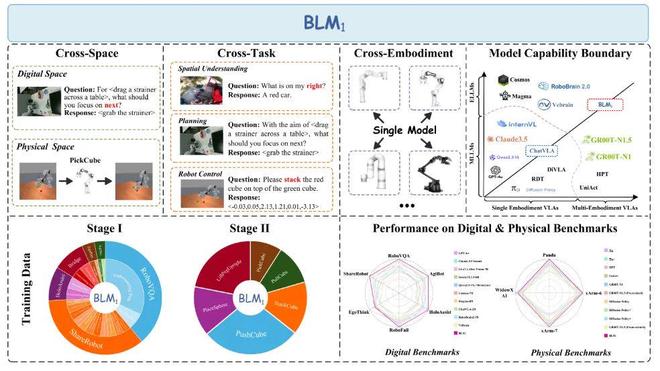 BLM-1.0采用双阶段训练新范式,使模型既能在数字世界中完成复杂的认知推理,又能在物理世界中精确操控真实机器人。