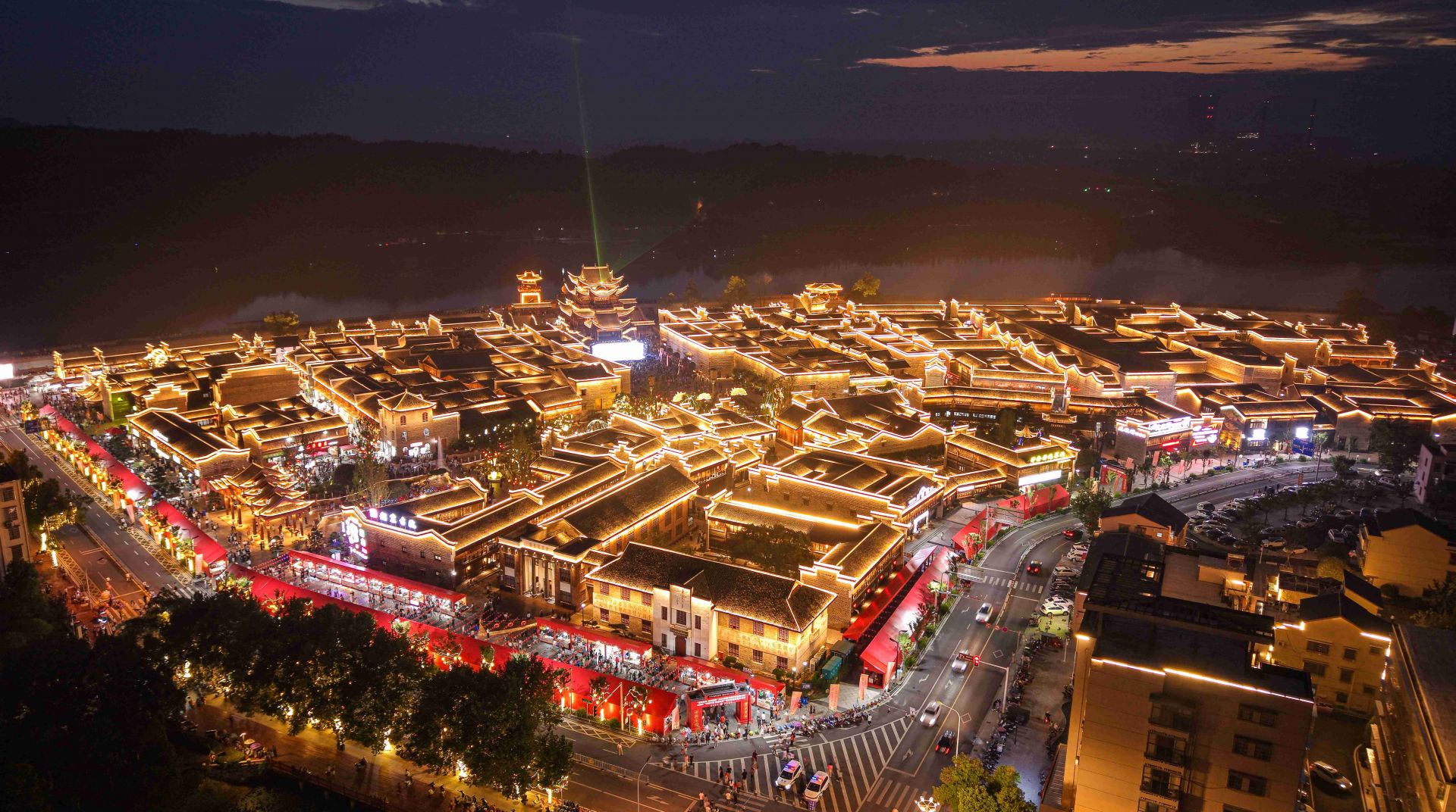 漫步古巷青石板路,游客仿佛步入一条时空走廊。两侧湘赣派建筑鳞次栉比,高墙灰瓦与精美的木雕相映成趣,成为天然影棚。永清正街上,不少游客身着汉服或旗袍,在独具民国风味的建筑前驻足留影,让传统建筑之美与现代打卡文化巧妙融合。夜幕降临后,月明楼的现代灯光秀将古建筑点亮,为厚重历史披上了一层梦幻色彩,吸引大量游客夜间打卡。