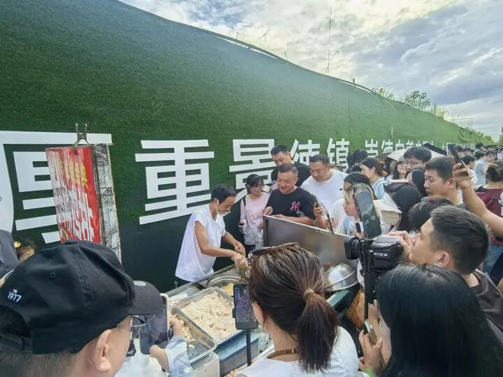 “鸡排哥”小小的摊位前,蜂拥而来的人们不停打断他的工作,只为求得一张合影、一段视频;真假难辨的“鸡排哥”账号在各平台纷纷冒头,“鸡排主理人”“鸡排大道”等热词随之涌现;部分自媒体也赶来蹭热点,用他的形象二次传播,作为引流变现的手段。