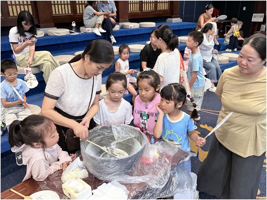 正是基于长期的文化培育,此次双节期间,儒学馆围绕“家国同庆、文脉传承”主题策划的5场特色活动精准击中需求:“先贤故事映家国”讲堂上,讲师以孔子坚守理想、范仲淹忧国忧民的典故为引,结合双节寓意阐释“家国共生”理念,现场家长与孩子共同记录感悟,儒家“修身齐家”思想在互动中悄然传递;“山河万里・扇绘锦绣”非遗漆扇体验课上,非遗传承人手把手教学,市民在勾勒山水、点染色彩间,读懂传统漆艺的匠心;“锦绣中华民族霓裳”手作、航天模型拼装、“创意肌理・光影月趣”月球灯DIY等活动,则让传统民俗与现代创意碰撞,百余名参与者在“听、做、玩、赏”中沉浸式触摸文化温度。
