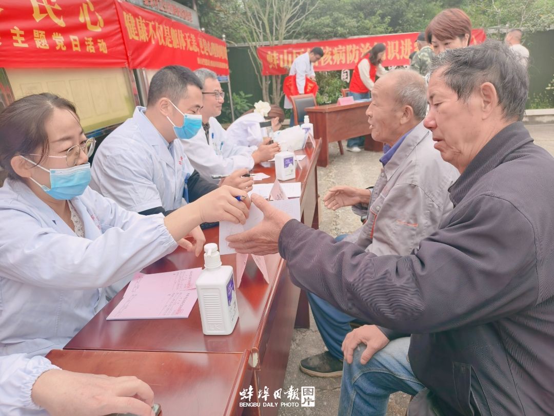 “大爷,您的血压稍微偏高,平时吃饭要少放盐。”在心血管内科咨询台前,主任医师耐心叮嘱72岁的朱大爷。旁边的血糖检测区,护士正细致地为村民采血,还不忘提醒,“请用棉签按压一会儿。”