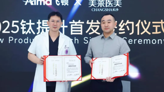 随后,在与会嘉宾的共同见证下,刘翔院长与杨凯总监分别代表长沙美莱与飞顿公司完成战略签约。一笔落下,不仅标志着双方合作的深化,也正式开启了「钛提升」在湖南地区的崭新篇章,为湖湘医美注入全新活力。