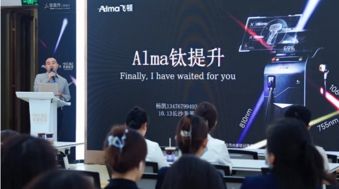 飞顿公司区域销售总监杨凯先生作为厂家代表也发表讲话。他指出:“飞顿始终走在光电科技的前沿,「钛提升」此次的技术突破在于“1次激发能同时发射3种激光”,三种波长联手打击肤色、细纹、松弛等不同问题。”