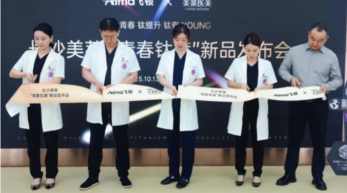 紧随其后的是庄重而热烈的剪彩环节。长沙美莱非手术专家团与飞顿公司代表并肩而立,共同执起象征开启新篇的金剪,金剪落下,预示着双方将以技术为桥、以品质为基,为求美者带来更专业、更优质的服务。