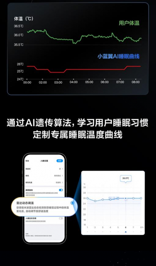 秋冬睡眠,保暖与保湿同样关键。传统空调制热易导致室内空气干燥、闷热不均,甚至半夜因过热而醒。而失眠人群的痛点,正被TCL小蓝翼C7新风空调精准狙击。TCL小蓝翼C7新风空调专为改善睡眠而来,通过全球首创的毫米波雷达感知技术,识别睡眠阶段人体体动状态,AI自动调节睡眠温度,通过AI遗传算法,学习用户睡眠习惯,定制专属可变睡眠温度曲线。同时能够实现16分贝静音新风,通过搭载四重降噪系统,实现新风噪音值降低17%,营造高质量睡眠环境,延长深度睡眠时长25%。