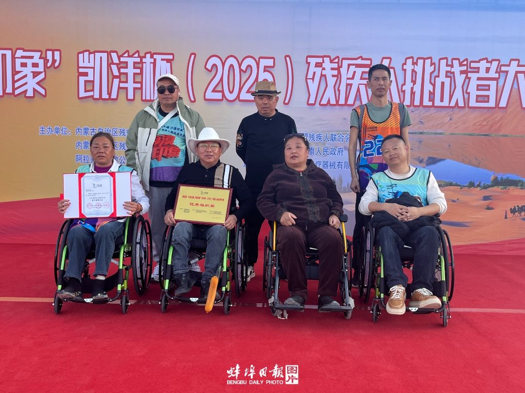 蚌埠发布客户端讯(融媒体记者 陈昂 通讯员 张爱兵 文 / 图)10月13日,第四届 “大爱北疆、沙漠印象” 残疾人挑战者大赛在内蒙古沙漠赛场圆满落幕。由蚌埠市优秀残疾人运动员组建的蚌埠轮椅队,作为安徽省代表队征战本次赛事,队员们以无畏意志挑战极限,在多个项目中斩获佳绩,不仅助力安徽赢得 “优秀组织奖”,更将蚌埠残疾人运动员的昂扬风貌展现于全国赛场。