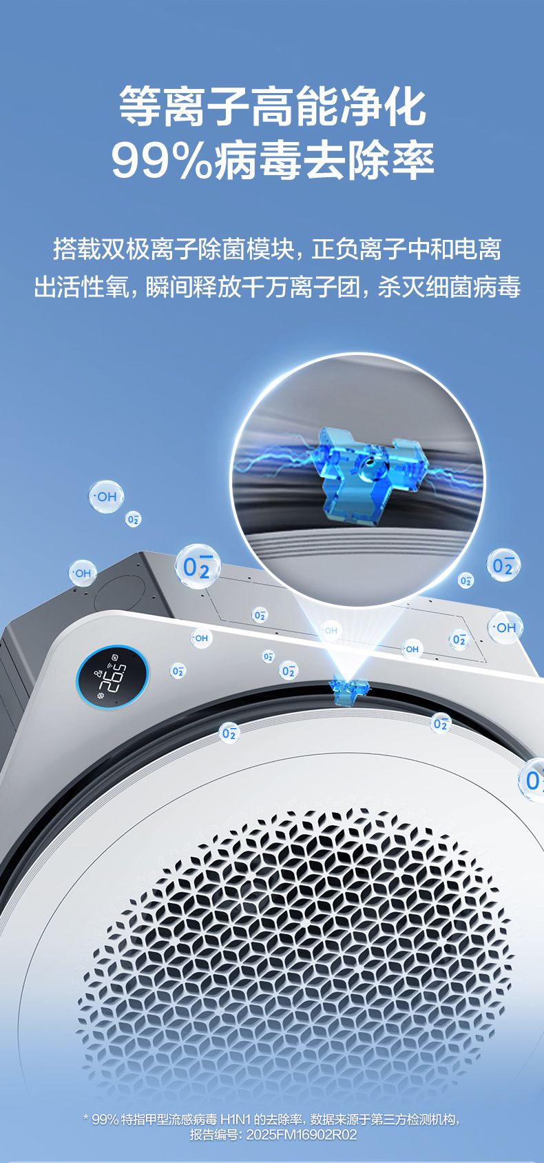 TCL小蓝翼天花机等离子高能净化功能,病毒去除率达99%