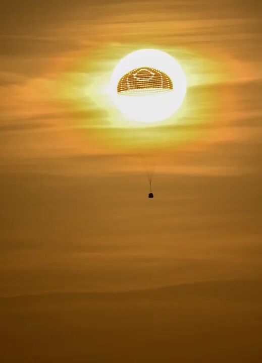 2025年4月30日,神舟十九号载人飞船返回舱在东风着陆场成功着陆。新华社记者 贝赫 摄