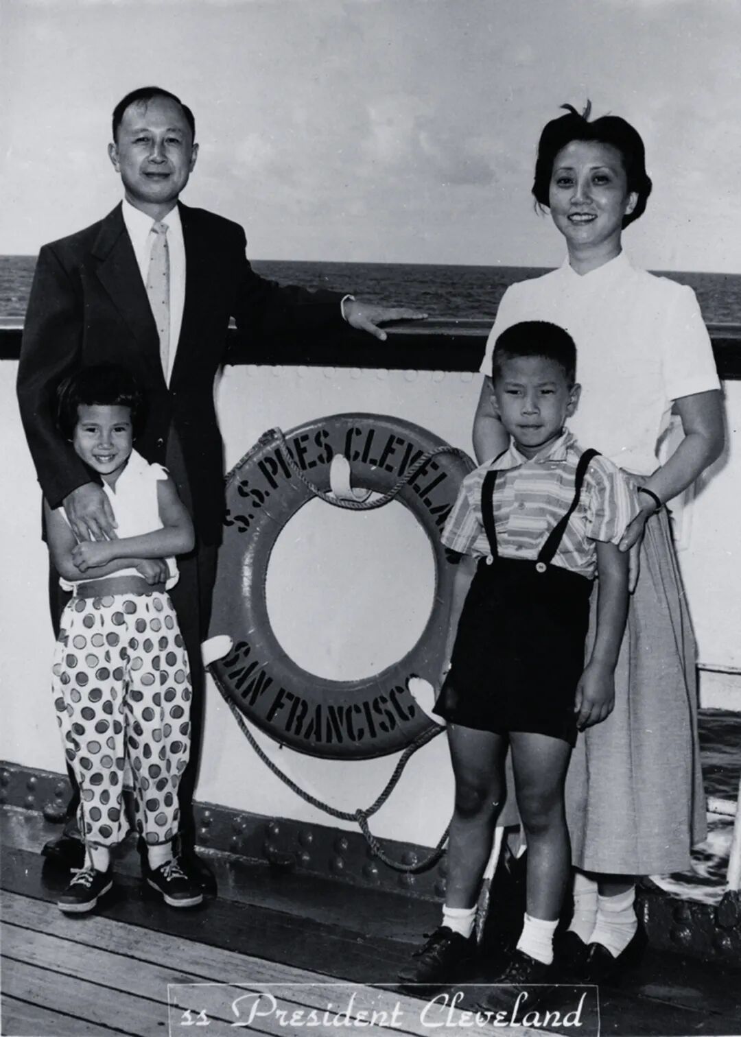 1955年钱学森一家启程回国时留影。图片来源:钱学森图书馆