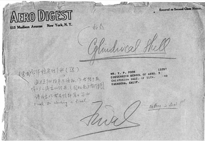 论文完成之后,钱学森把最后的手稿存放到纸袋里,并在纸袋外面写下了“Final”(定稿)字样。