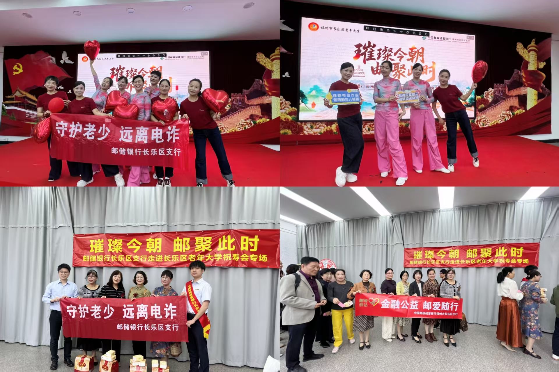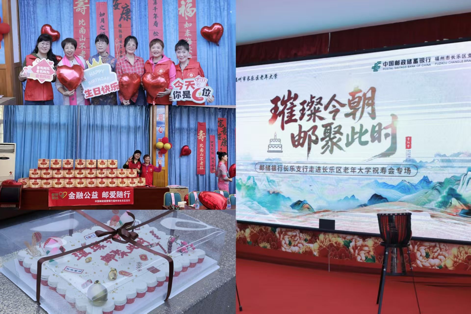 夕阳熔金,为长乐区老年大学的窗棂镀上温润光晕。在秋意渐浓之际,邮储银行长乐区支行的志愿者们捧着精心筹备的祝福走进这片书香园地,一场名为“璀璨今朝 邮聚此时”的福寿会专场活动,正在为银发学子们开启一场浸润心意的生日盛宴。