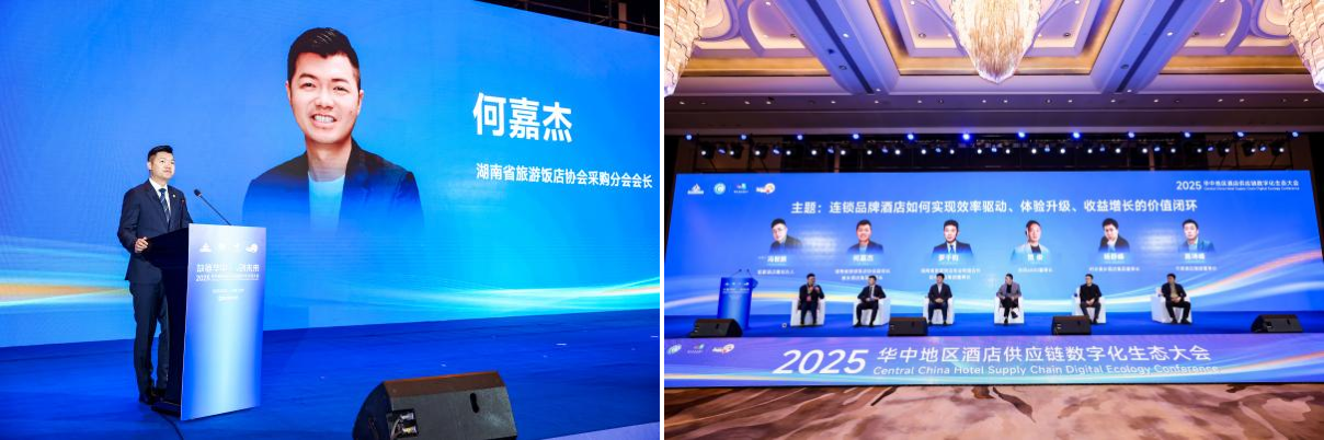 大会期间,作为新一届采购分会会长,慧友酒店集团董事长何嘉杰深度剖析了目前华中地区酒店供应链的现状与痛点。在大会期间举行的“连锁品牌酒店如何实现效率驱动、体验升级、收益增长的价值闭环”圆桌对话中,何嘉杰提出的“标准化+数字化”双轮驱动策略引发行业共鸣。他认为,酒店供应链的核心矛盾,在于需求的个性化与供应的规模化之间的失衡,而数字化能打通从采购到运营的全链路,让每一分成本都产生价值。
