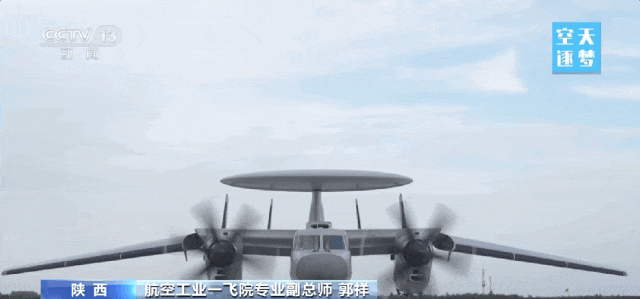 航空工业一飞院院长 耿延升:它有一个大大的圆盘,是预警天线的天线罩,我们要达到比较大的探测距离,预警探测的天线正面尺寸做得比较大,这么一个大的圆盘在这个小吨位量级的飞机上已经做到了极限。
