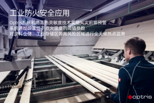 在早期火灾探测领域,Optris系统利用高热灵敏度技术实现火灾前期预警。系统通过设置低于点火温度的阈值参数,对废料仓储、工业存储区等高风险区域进行全天候热点监测。特别是在锂离子电池安全监控方面,Optris技术能够有效检测热失控的早期迹象,防止灾难性故障和火灾事故的发生,为各类工业环境提供了可靠的防火保护解决方案。