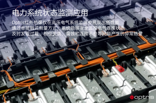 在新兴的电池监测领域,Optris红外热像仪能够精确识别锂离子电池热失控的早期迹象,防止灾难性故障和火灾,确保电动汽车和储能系统的安全性。