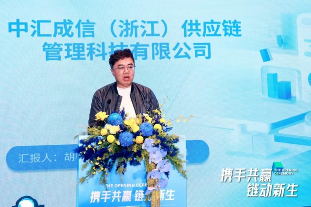 仪式上,中汇成信(浙江)供应链管理科技有限公司 总经理/合伙人胡树旺介绍了公司的核心业务架构和发展规划,重点展示了在供应链数字化、金融服务创新等方面的实践路径。