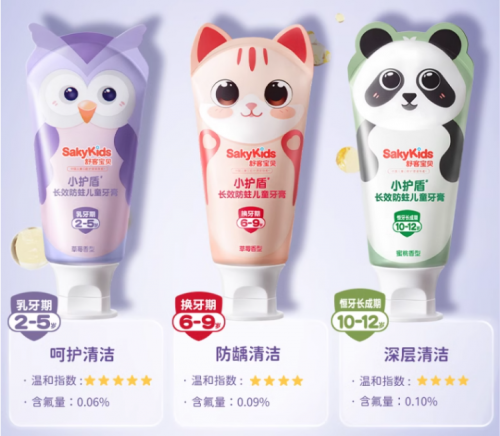 舒客宝贝深耕儿童口腔护理领域11年,始终以“科学分龄”为核心理念,深入研究儿童口腔发育的不同阶段特征,并严格参考国家相关标准,打造针对性护理方案。作为唯一一款上榜的儿童牙膏,舒客宝贝长效防蛀儿童牙膏氟含量严格控制在国标要求的0.05-0.11%范围内,既保证有效防蛀,又避免氟含量不当带来的风险,精准匹配换牙期牙齿防护需求。在清洁力设计上,产品创新性采用“RDA 清洁力分级”技术——该技术已通过美国印第安纳大学专业护齿检测,根据2-12岁儿童娇嫩牙龈与牙釉质特点,科学配置水合硅石配比,将清洁力控制在温和有效的范围内,实现“只清洁不伤牙”的效果。同时,精选高级软性水合硅石磨料,搭配绵密低泡配方,既能深入清洁牙齿缝隙残留,又能避免摩擦损伤牙釉质,呵护换牙期脆弱口腔环境。