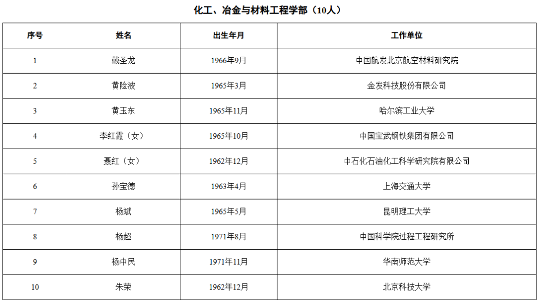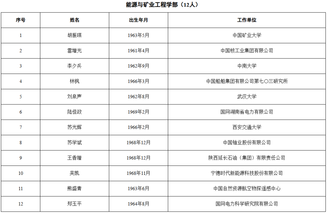 2025年当选中国工程院院士名单