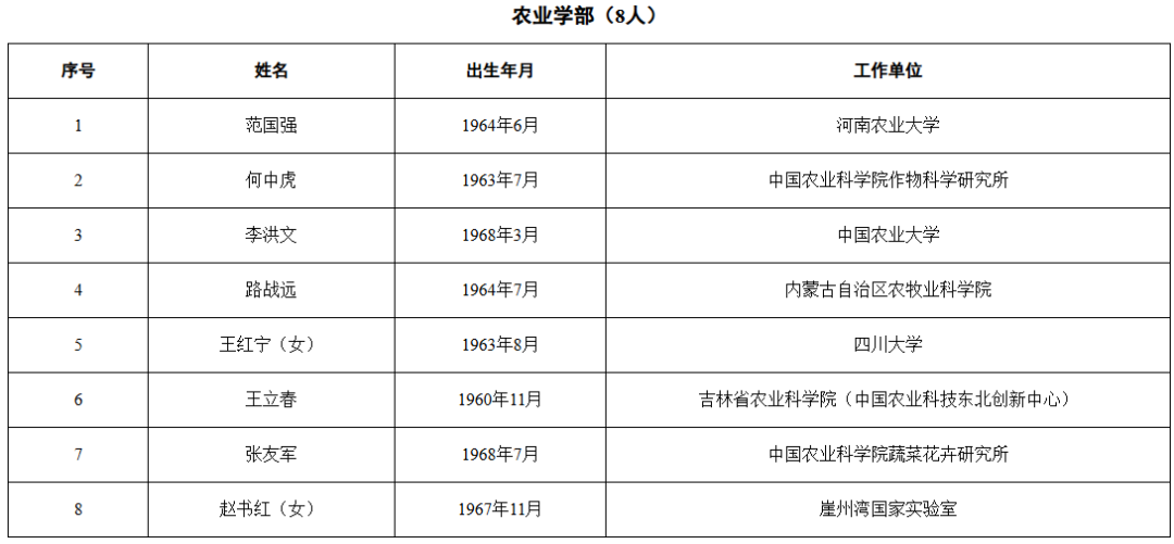 2025年新当选中国科学院院士名单