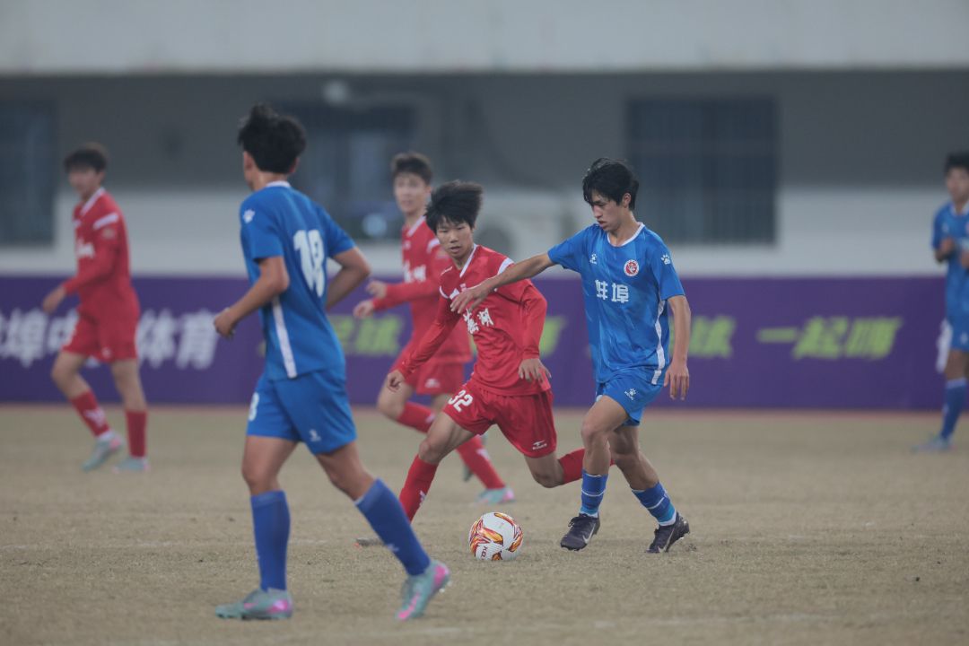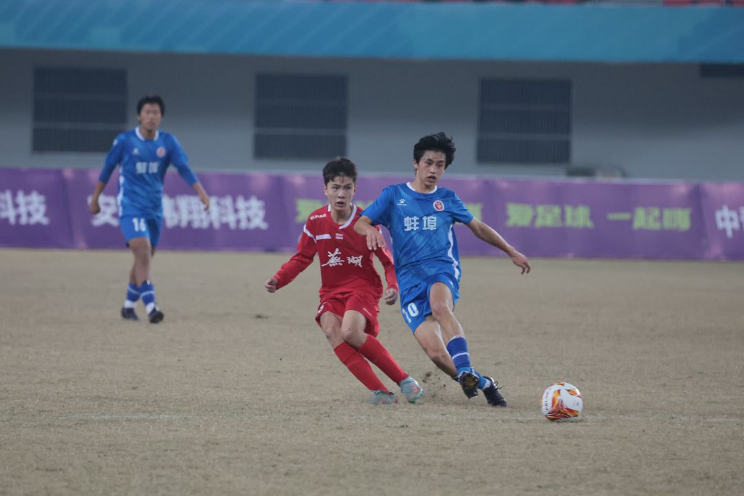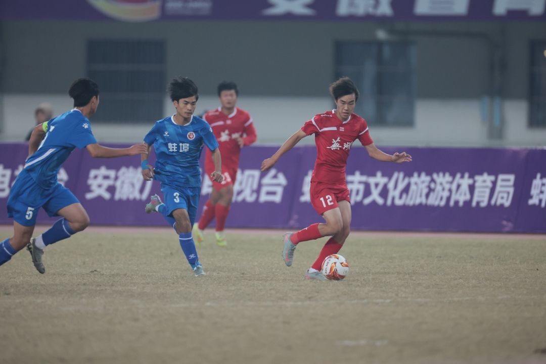 开场哨声响起,身着蓝色战袍的蚌埠队率先发起攻势。开场两分半左右,蚌埠队球员利用精准的传球多次撕开对方防线,迅速确立了1:0的领先优势。上半场结束,蚌埠3:0暂时领先。