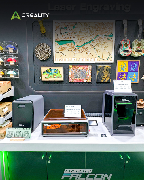本次展会最受关注的亮点之一,当属创想三维首发的Falcon T1激光雕刻机,这款全球首创的五合一激光雕刻机集成蓝光、紫光、光纤、MOPA技术路径,覆盖20W、40W、60W全功率段。