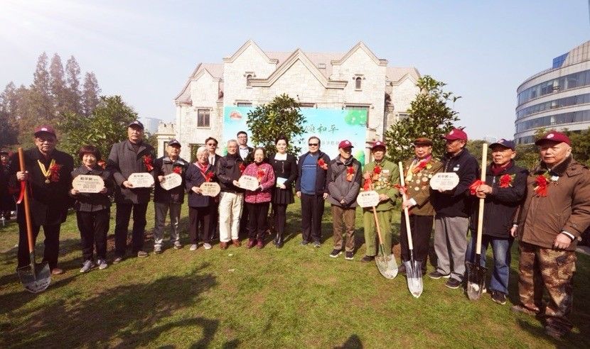 今天的植树活动,共栽种富有品格高洁、寓意团圆思念的桂花树两百多株。更有意义的是,所栽种的部分树木由新四军老战士、参加上海解放战役的开国将军和为上海各项建设事业做出贡献的人士定名挂牌,由他们的后代认养。