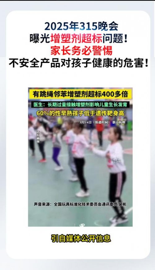市面上很多廉价产品用的是劣质塑料,存在有增塑剂超标风险。2025 年 315 晚会就曝光过跳绳的这类问题,长期接触这类产品对孩子生长发育危害极大。